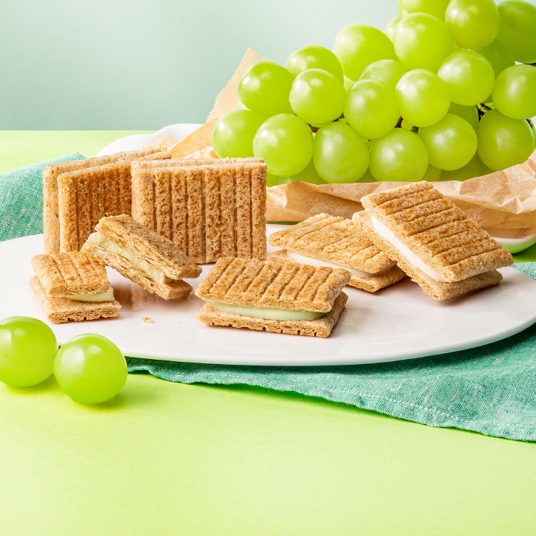 なめらかなホワイトショコラに、国産シャインマスカットのフレッシュなおいしさを合わせて生まれた夏限定サンド。5種素材を使った香ばしいシリアル生地にも国産シャインマスカットを使用し、袋を開けた瞬間から芳醇な香りが広がります。