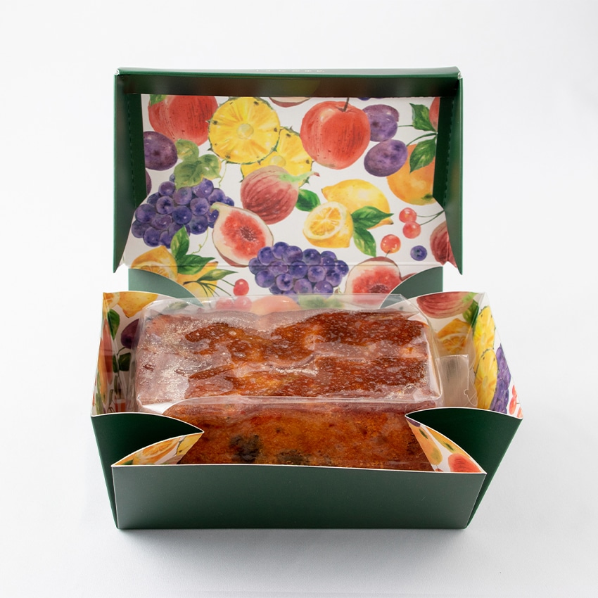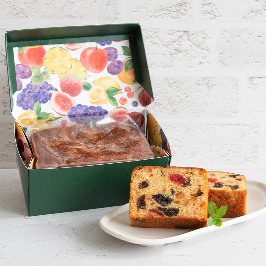 生地と同量のたっぷりフルーツを混ぜ込んで焼き上げた風味豊かなパウンドケーキです。