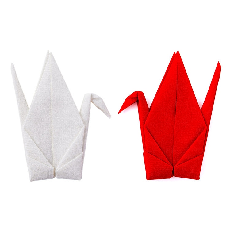 ポリエステル素材にプリーツ加工を施すと形状記憶するという特性をいかし折り込んで加工することで、広げても折り紙のかたちに戻る布が完成しました。