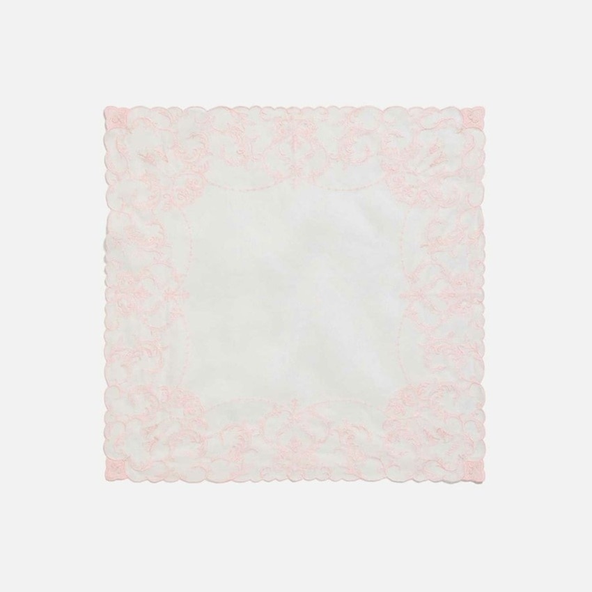 淡い色の刺繍糸が可憐な印象ですが、たっぷりと幅広くほどこされた刺繍はとても豪華。
