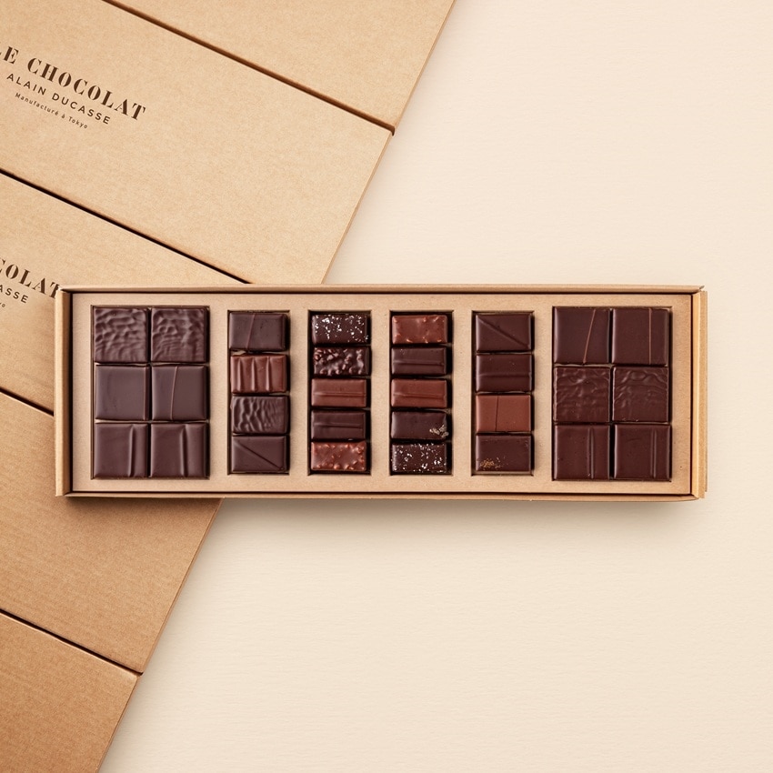 パリエ房でカカオ豆の倍煎から一貫して作られるクーベルチュールを使用し、東京工房で一粒ひとつぶ仕上げたショコラたち。単一産地のカカオ豆で作られるガナッシュ・オリジン、フレーバーをブレンドしたガナッシュ・グルマンド、香り豊かなプラリネを閉じ込めたプラリネ・ア・ランシエンヌの3タイプで、素材の風味際立つショコラを堪能いただけるアソートです。