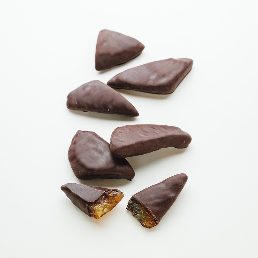 ショコラ・ノワールの薄いコーティングが果物の味を引き立てます。