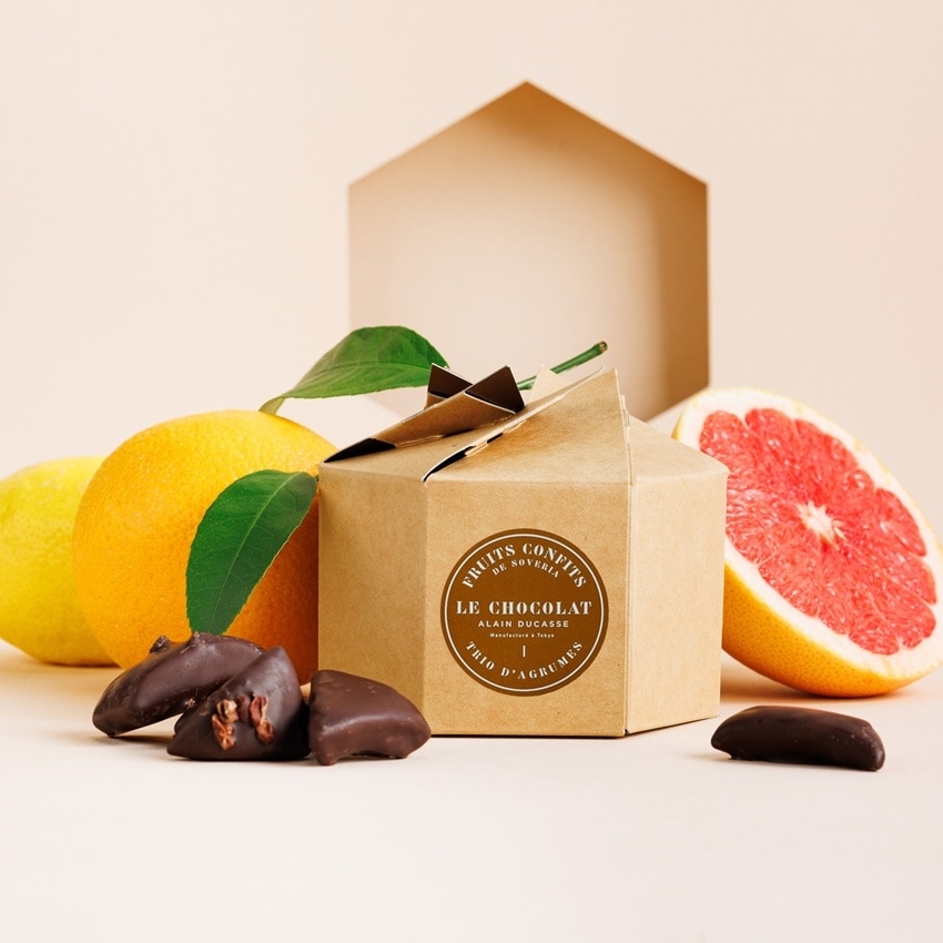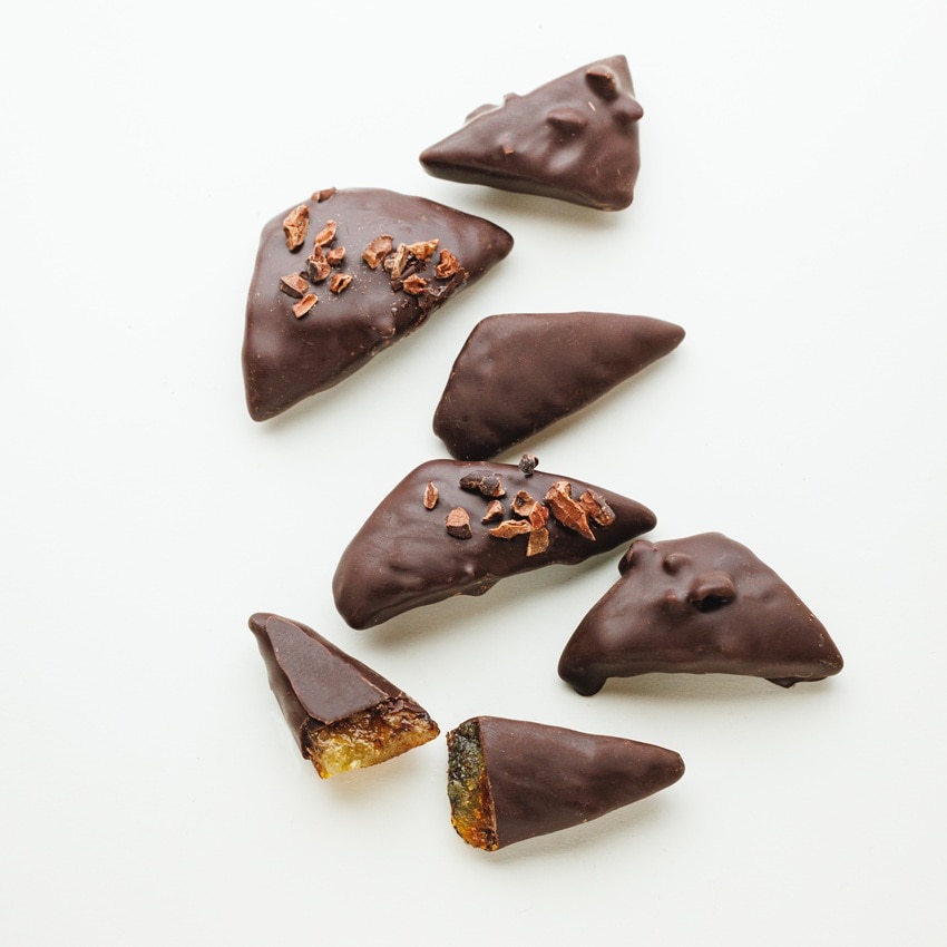 ショコラ・ノワールの薄いコーティングが果物の味を引き立てます。