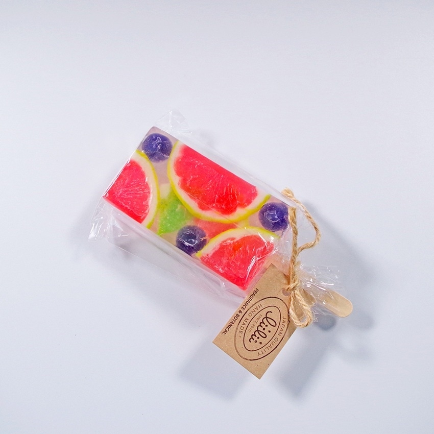 ※まれに石けん素地の粒が混じったり、グリセリンの保湿成分が溶け出し、表面に水滴のように付く場合がありますが、製品の品質に問題はありません。