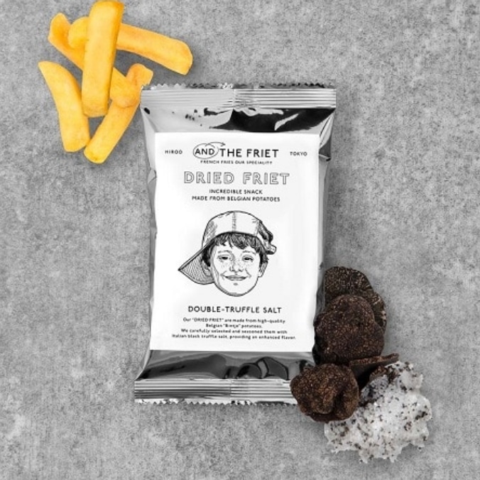 ダブルトリュフソルトDRIED FRIET - DOUBLE-TRUFFLE SALT世界各国から取り寄せた上質なジャガイモで作られたドライフリットに、倍増したイタリア産の黒トリュフが華やかな香りを添えています。