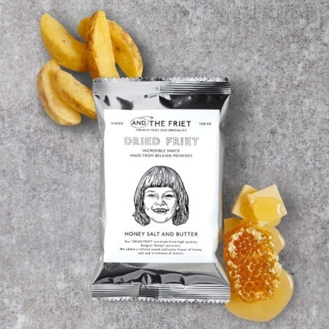 ハニーソルト アンド バターDRIED FRIET - HONEY SALT AND BUTTER世界各国から取り寄せた上質なジャガイモで作られたドライフリットに、ハニーソルトの品の良い甘じょっぱさとバターのコクを加えました。