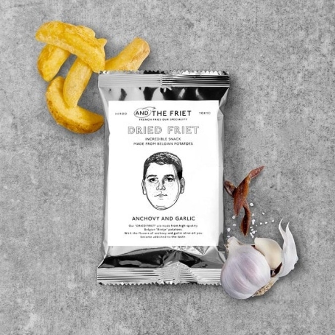 アンチョビ アンド ガーリックDRIED FRIET - ANCHOVY AND GARLIC世界各国から取り寄せた上質なジャガイモで作られたドライフリットに、アンチョビの旨味とガーリックオリーブオイルの香りが加わり、やみつきのおいしさをお楽しみいただけます。