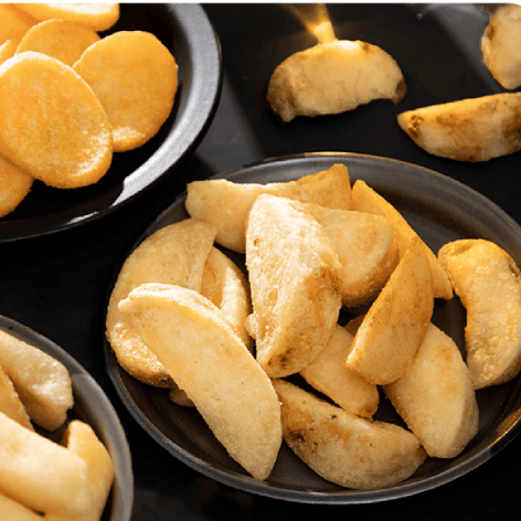 - 日本の直契約農家だけでなく、世界各国から厳選した芋を取り寄せてフレンチフライのカットのまま加工。特殊なフライヤーでゆっくり時間をかけてサクサクの食感を引き出すことにより、素材の良さとおいしさを活かしています。