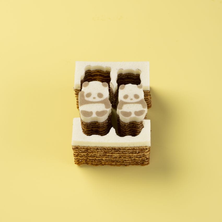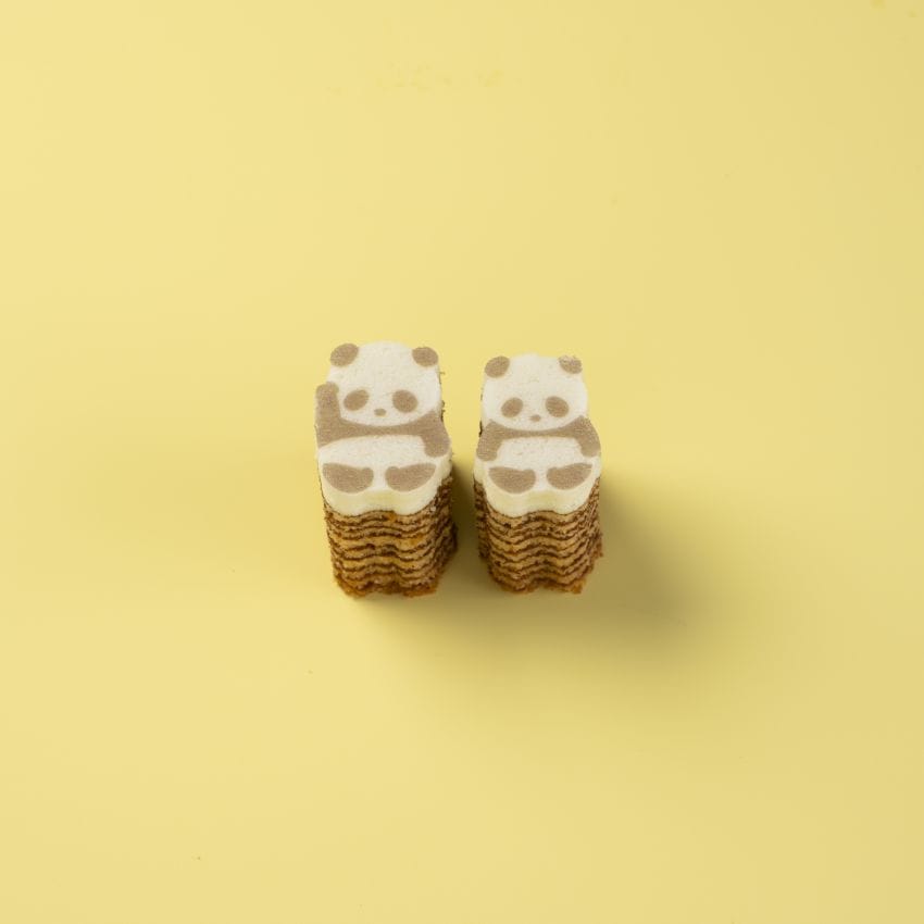 いちばん上の真っ白生地をキャンバスにして、パンダきょうだいのプリントとカットをほどこしました。