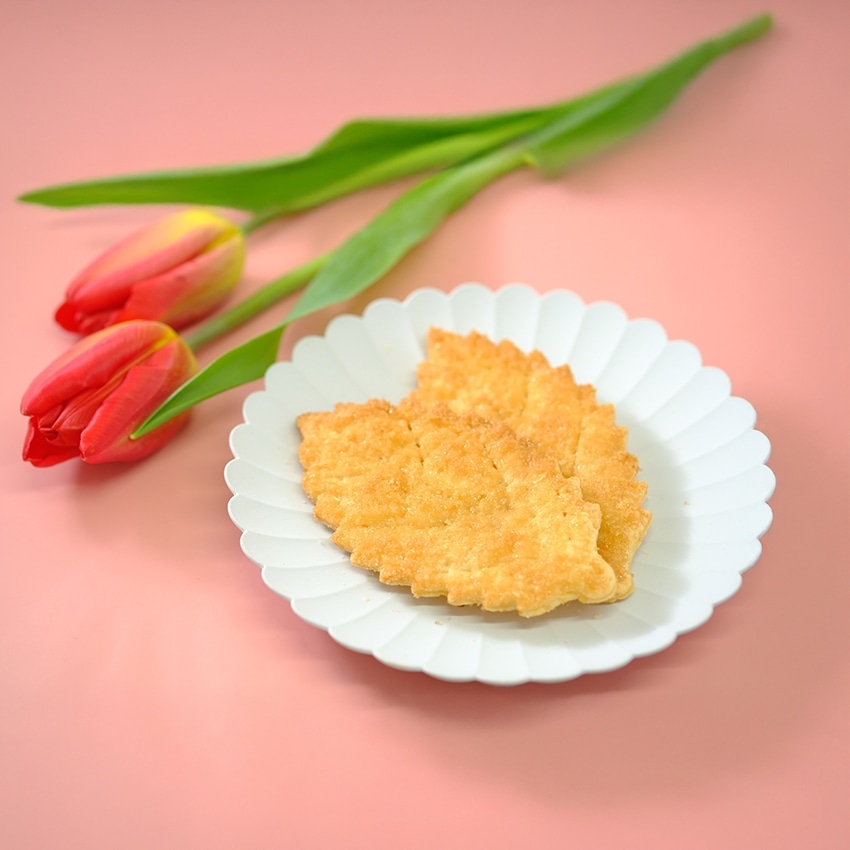 羽のように軽いヴィーガンパイ生地の軽快な食感と、ザラメ糖の香りと歯ざわり、上品な味わいをお楽しみください。