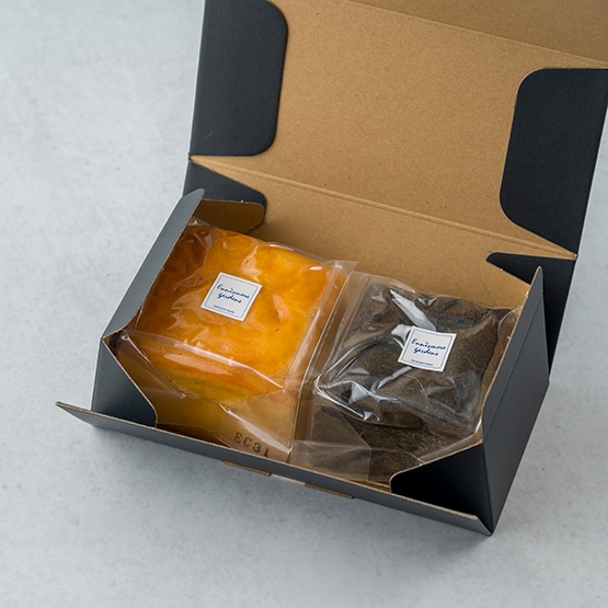 上質な練りごまを惜しまず贅沢に使用した、当店のオープン当初から人気のパウンドケーキ。絶妙に配合された黒ごまが、驚きの食感を生み出しました。真っ黒な黒ごま生地とタルト生地との見た目のコントラストもお楽しみください。しっとりとした深みのある味に、ごまの芳ばしい香りが食欲をそそる一品です。