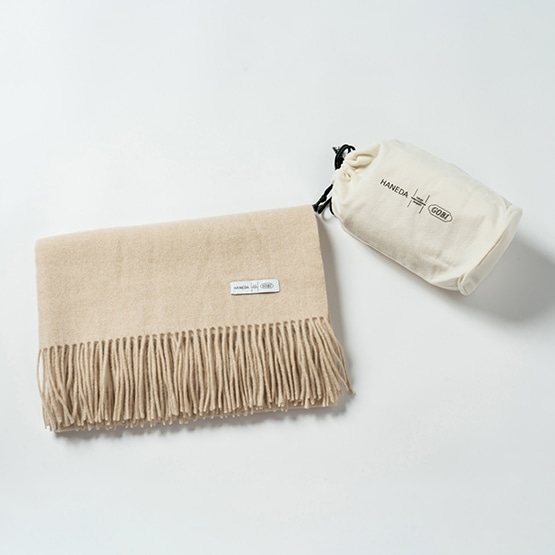 羽田空港とGOBIが共同開発した羽田限定ストールは、モンゴルにしか生息しない4種類のカシミヤ山羊の天然の色を活かした染色を施していないオーガニックカシミア100%のストール。
