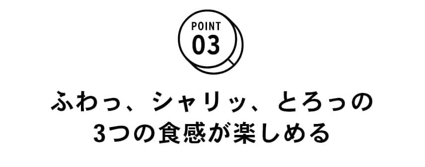 • 「ふわっ、シャリッ、とろっ」の3つの食感がたのしい!