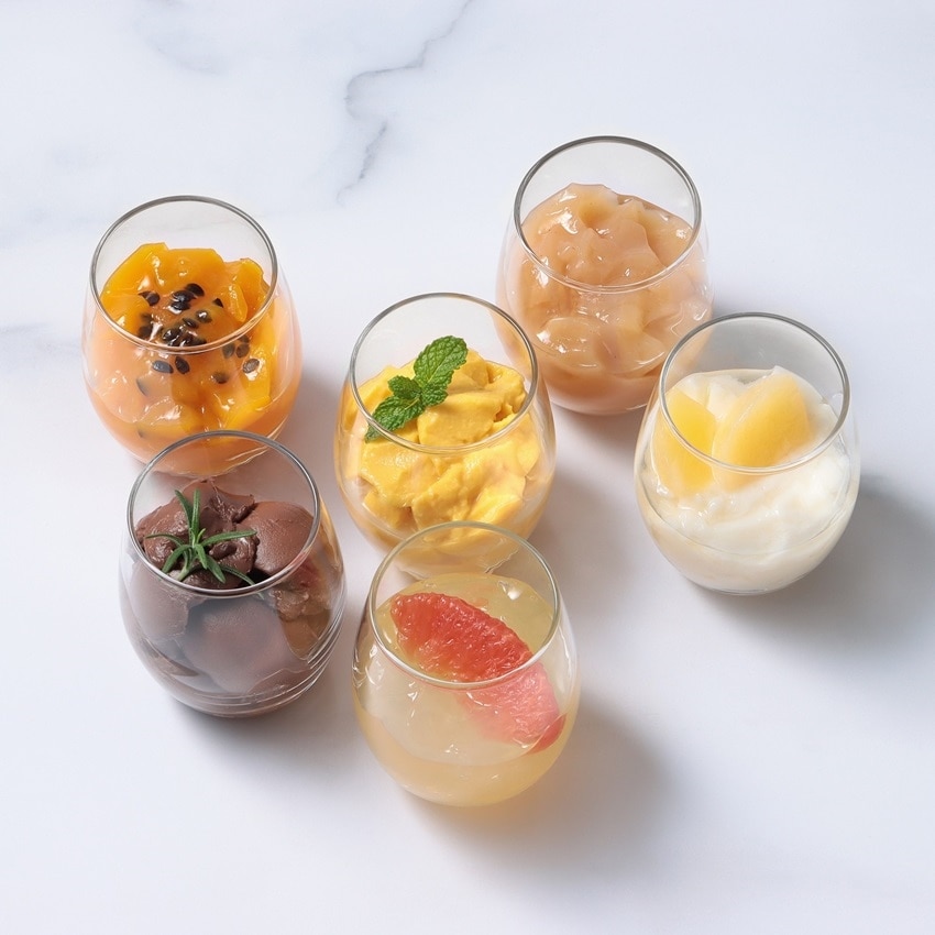 ■ 内容量:マンゴープリン・杏仁豆腐・チョコレートプリン・グレープフルーツゼリー・マンゴー&パッションフルーツゼリー・ストロベリー&ライチゼリー 各120gx各1個
