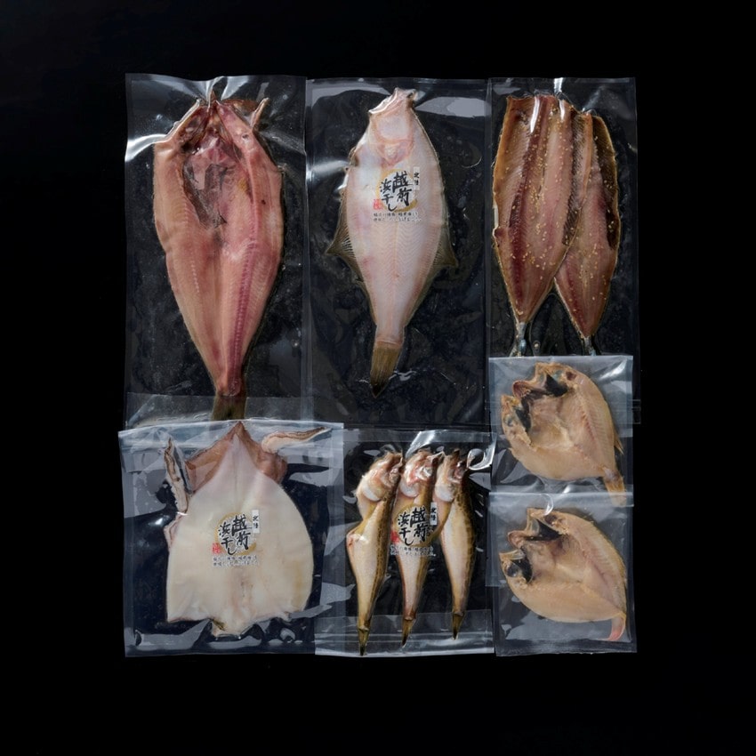 ■ 内容量:開きほっけ200g、干し赤がれい170g、開きのどぐろ55g×2、干しはたはた100g(計3尾)、開きいか70g、さんま味醂干し150g(計2尾)