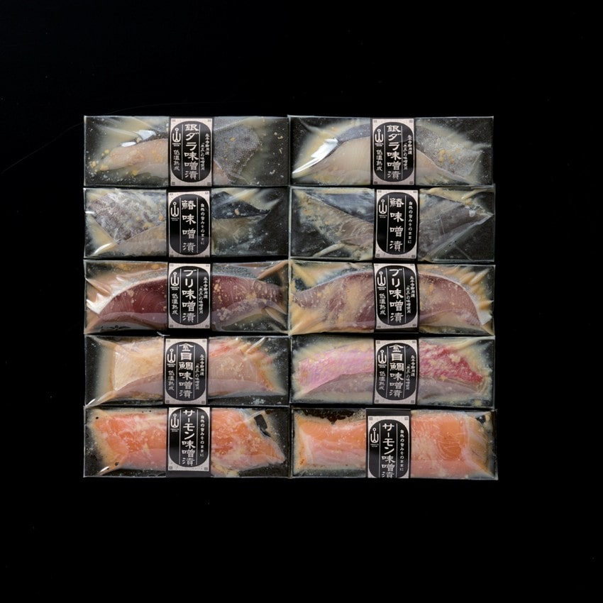 【商品説明文】脂ののった魚を永平寺御用達「米五」の味噌に漬け込みじっくり低温で熟成させた海鮮味噌漬の詰合わせです。