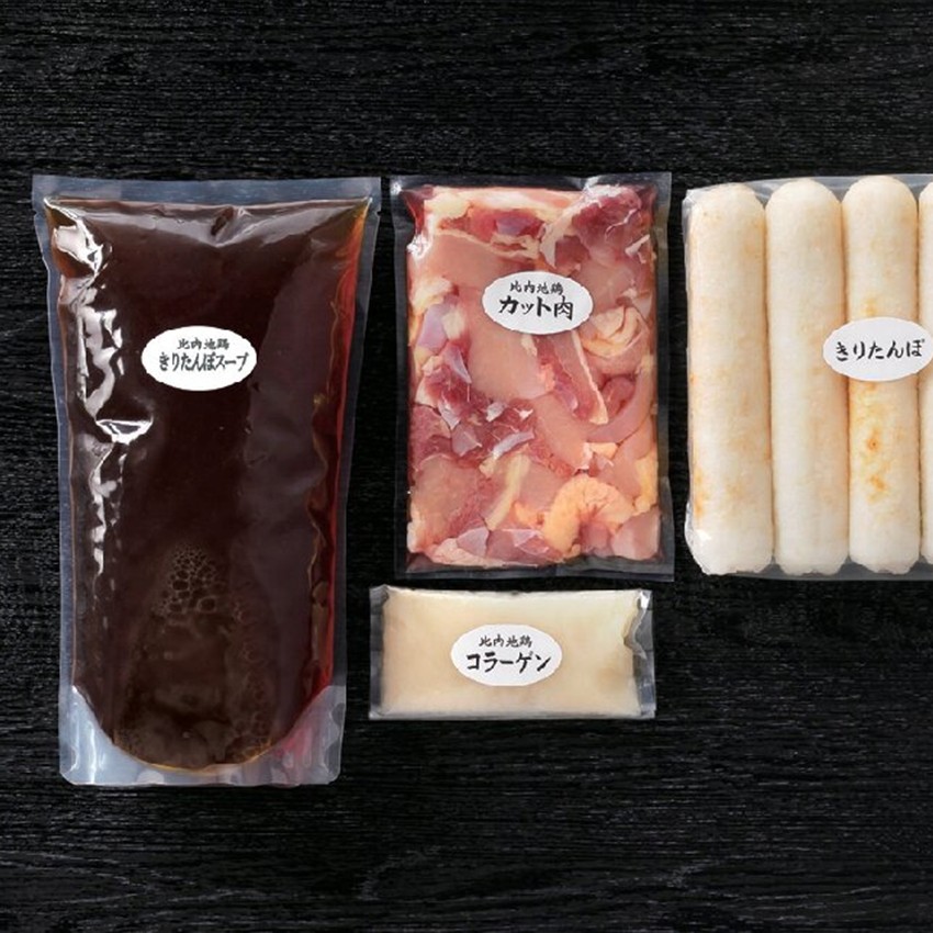 ■ 内容量:きりたんぽ(5本入)×1、比内地鶏(カット肉)300g、比内地鶏コラーゲン50g、比内地鶏きりたんぽスープ1000ml