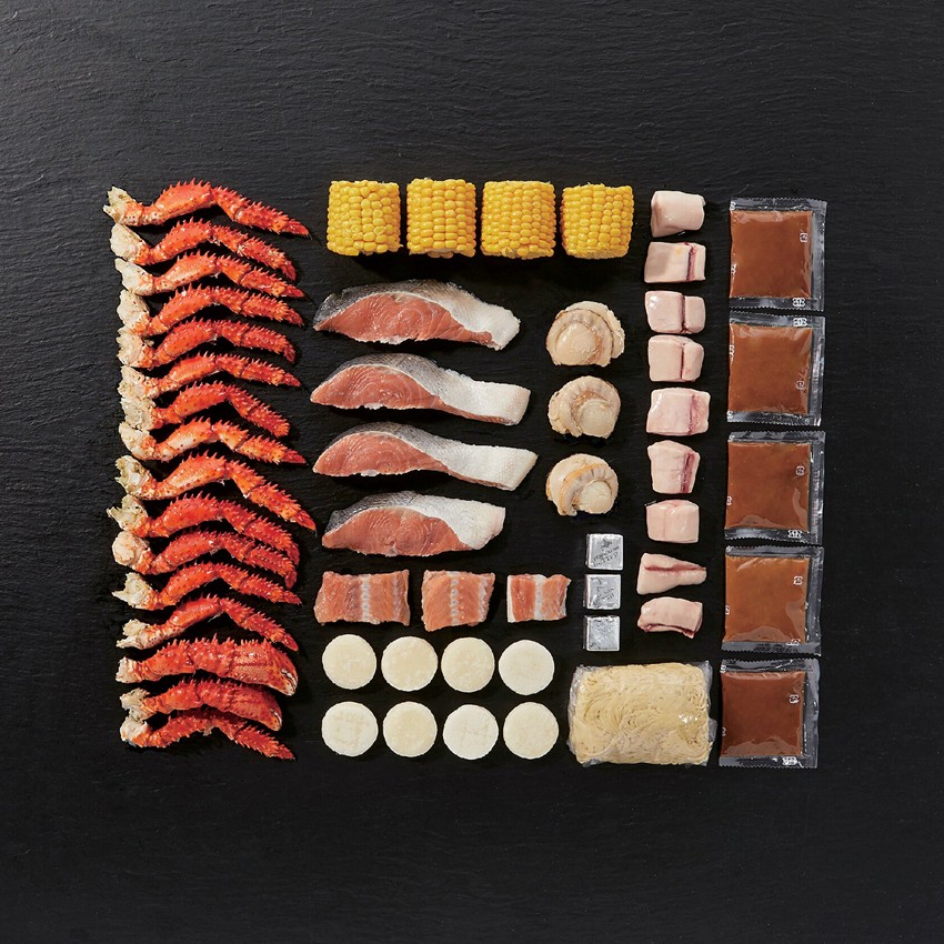 【商品説明文】北海道近海の花咲がに、鮭、帆立の他、コーン、いももちなどを揃えました。
