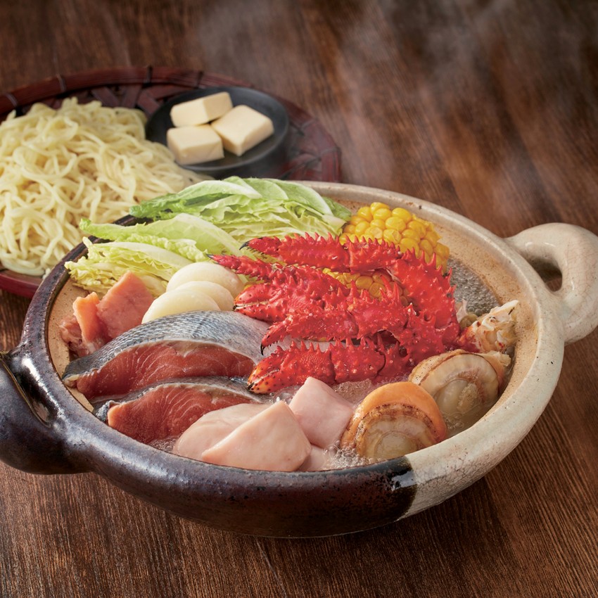 ■ 内容量:ゆで花咲がに脚300g、秋鮭切身4切(250g)、ゆで帆立・秋鮭白子各100g、秋鮭アラ50g、バター8g×3、カットコーン×4、いももち×8、ラーメン180g、鍋用味噌30g×5