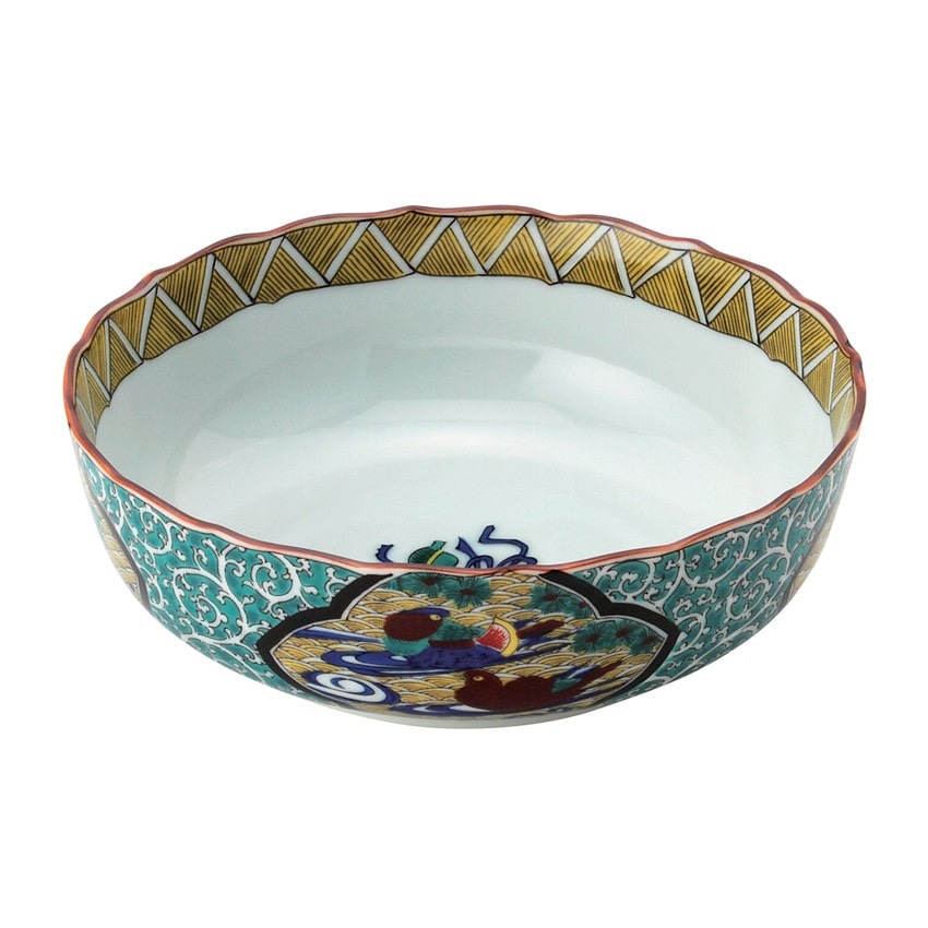 【商品説明】おしどりと鳳凰が力強く描かれた、九谷焼の中鉢。 九谷焼の特長である「五彩ー青(緑)・黄・赤・紫・紺青」をふんだんに使っており、色鮮やかで華やかな上絵付が美しい。 北国ならではの力強い素地と、色彩が重なりあって生まれる重厚感を楽しみたい。どんな料理も引き立てる華やかな色合いは、持っていると重宝することだろう。