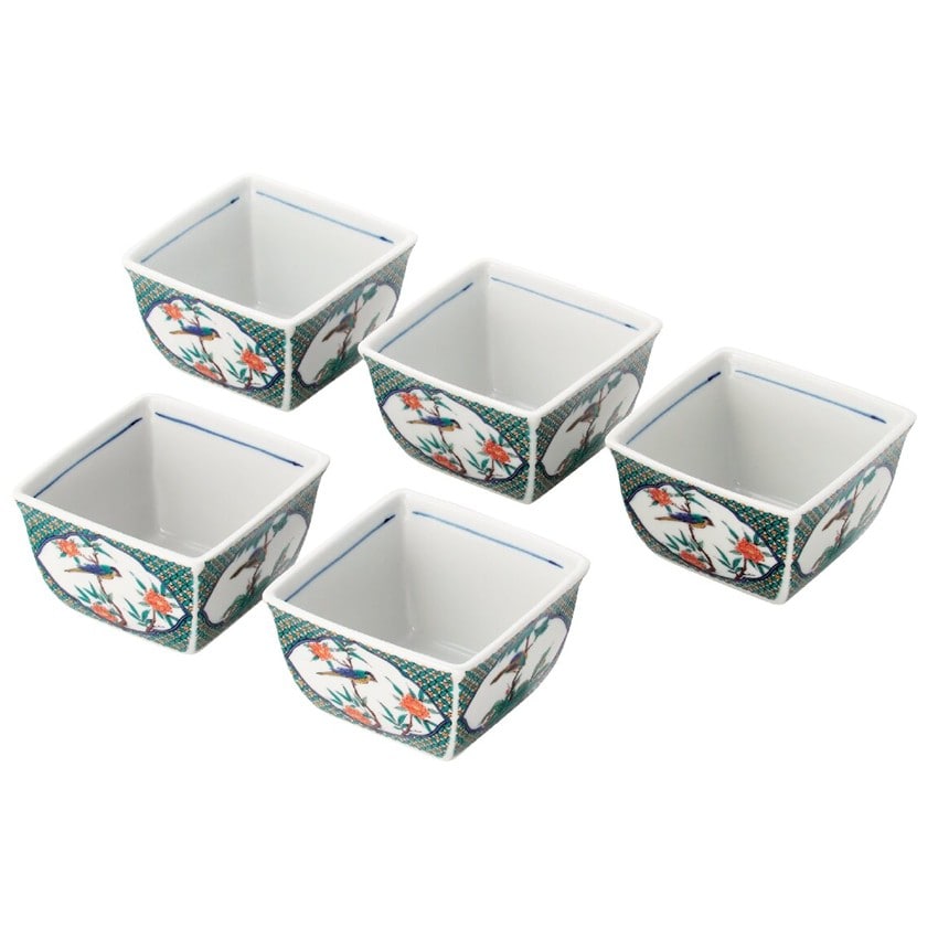 【商品説明文】石川県を代表する色絵磁器の九谷焼。約360年前の九谷焼創始期の作品「古九谷」に見られるような重厚感の感じられる絵付けを、使いやすい小鉢に施しました。晴れの日のおもてなしにも、普段使いにも、テーブルのアクセントになりそうな小鉢揃です。