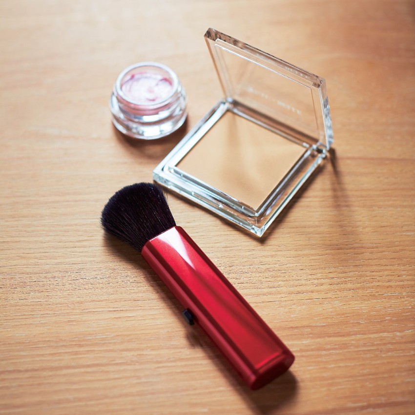 【商品説明】「日本の美」を意識した紅の柄が美しい携帯用チークブラシは、やや丸く、側面近くまで広く使えるオーバル形状。弾力があり、細かい毛先をもつヤギの毛を生かした形で、筆圧を調整しやすい。ブラシ一つで際立つ仕上がりをぜひ体感してほしい。
