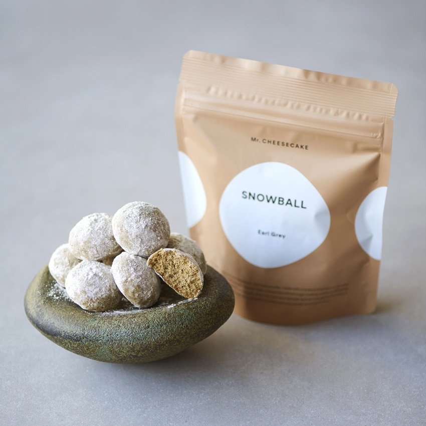 たっぷりのアーモンドパウダーとフランス産小麦の小麦粉をオーブンで焼いてから使用した、ほろほろと崩れる軽く儚い食感が特長のMr. CHEESECAKEのスノーボール。