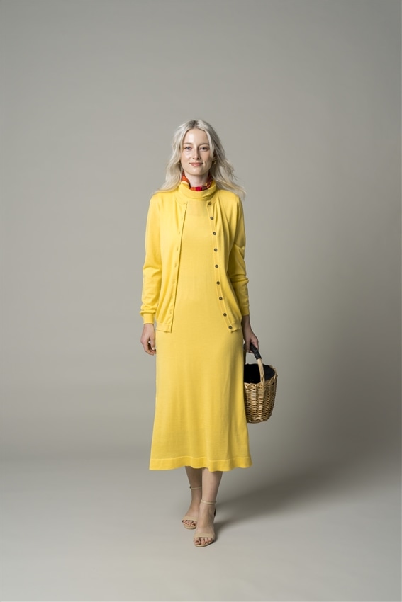 シルク混カシミア スリーブレス ロングワンピース イエロー/11-7143