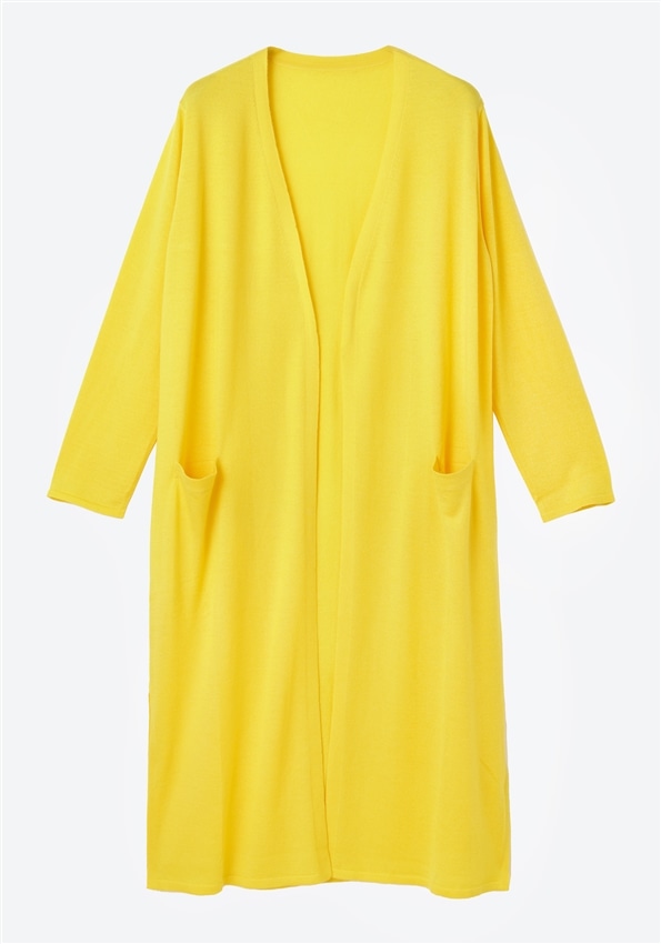 シルク混カシミア Wポケット ガウンカーディガン イエロー/11-7143