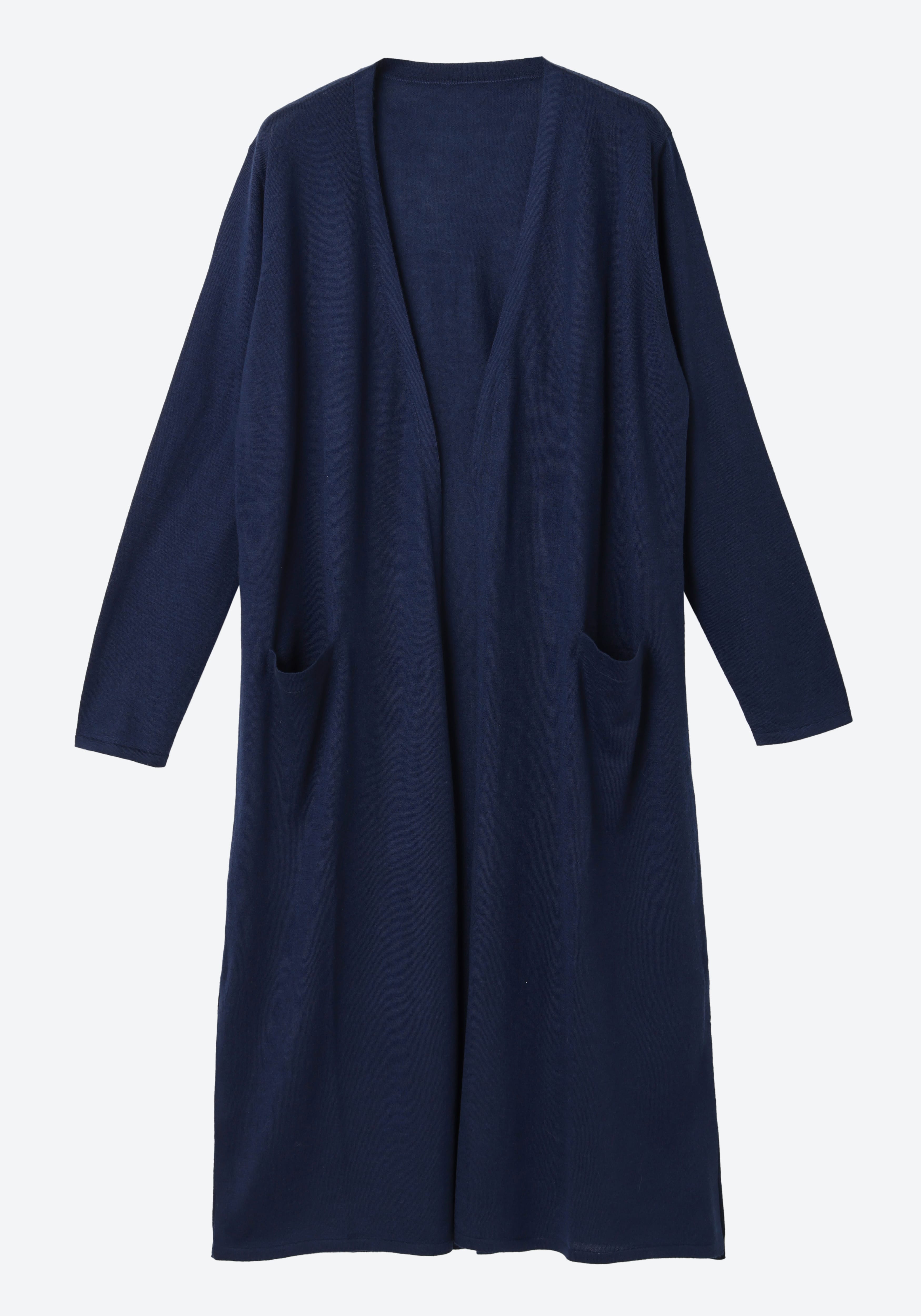 シルク混カシミア Wポケット ガウンカーディガン ネイビー/11-7019