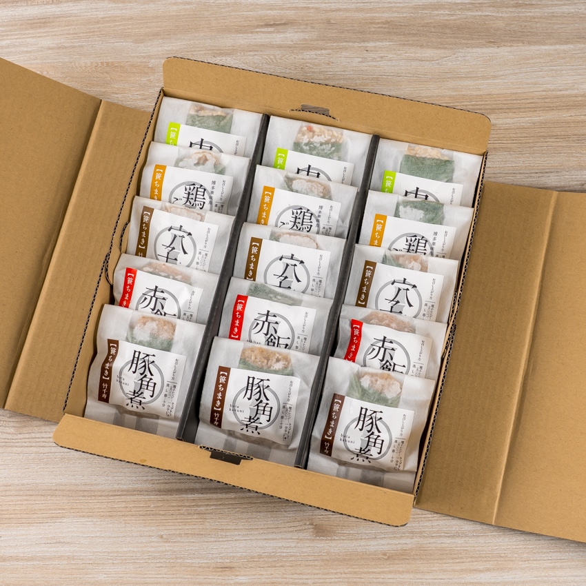 贈り物人気No.1の定番5種詰め合わせ。九州産もち米100%使用の笹ちまきは縁起の良いご馳走ちまき。ギフトで人気の個包装でお届け致します。
