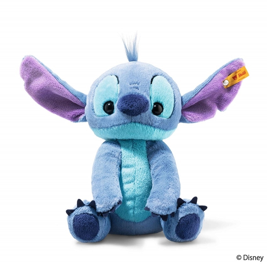 一方で、ふわふわとした愛らしい姿をしており、お座り姿のスティッチがシュタイフの仲間にに加わりました。