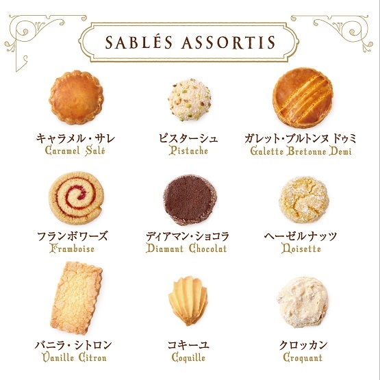 ■ 内容量:47個入(フランボワーズ5個・ディアマン・ショコラ6個・ガレット・ブルトンヌ ドゥミ4個・キャラメル・サレ5個・ヘーゼルナッツ3個・ピスターシュ8個・バニラ・シトロン5個・コキーユ8個・クロッカン3個)