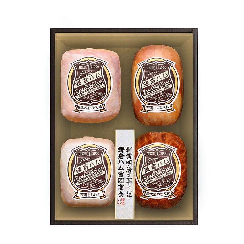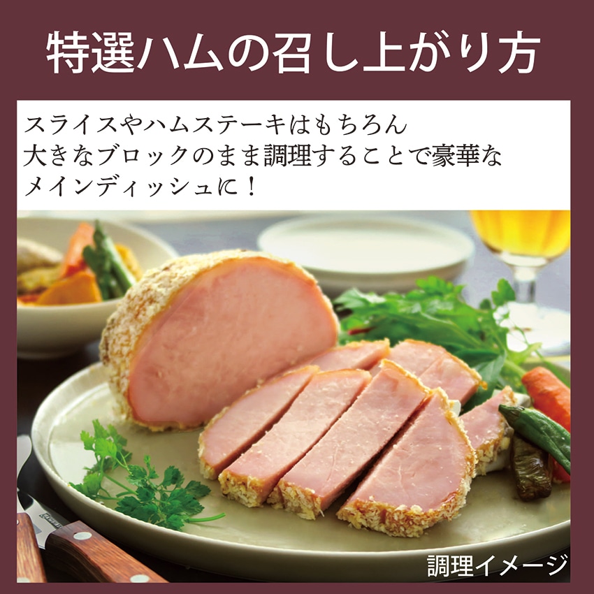 独自の調味液で味付けした豚ロース肉をスモークして仕上げた特選ロースハムと、あっさりとした中にも深みのある味わいのノンスモークタイプの特選ハム、焼豚の詰合せです。