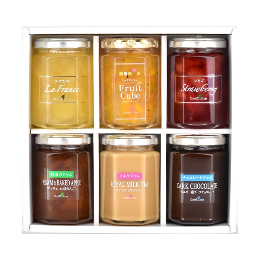 果肉感が楽しめるフルーツジャム、2種類の紅茶のジャム、ビターな味わいのチョコレートジャムです。