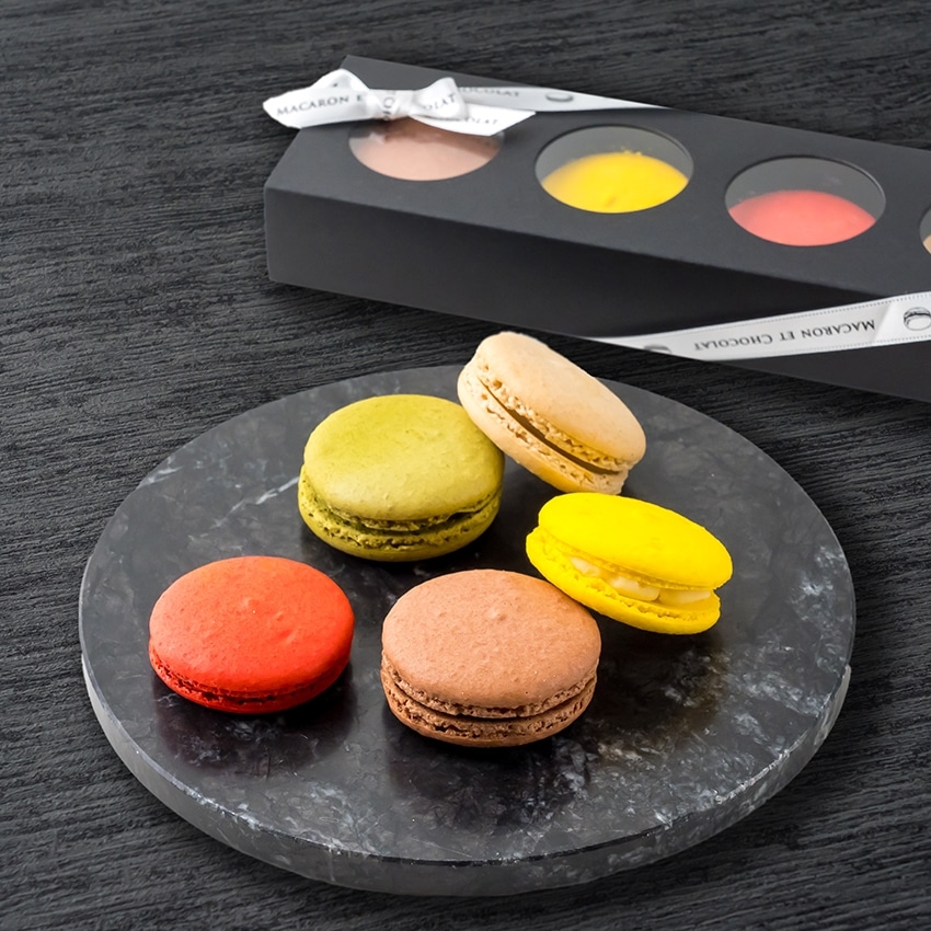 日本人の味覚に合わせてしっとりした甘さ控えめのスイーツづくりをコンセプトにしたクラフトスイーツブランド『MACARON ETCHOCLAT』の人気のマカロンを詰め合わせたセットです。(各1個)