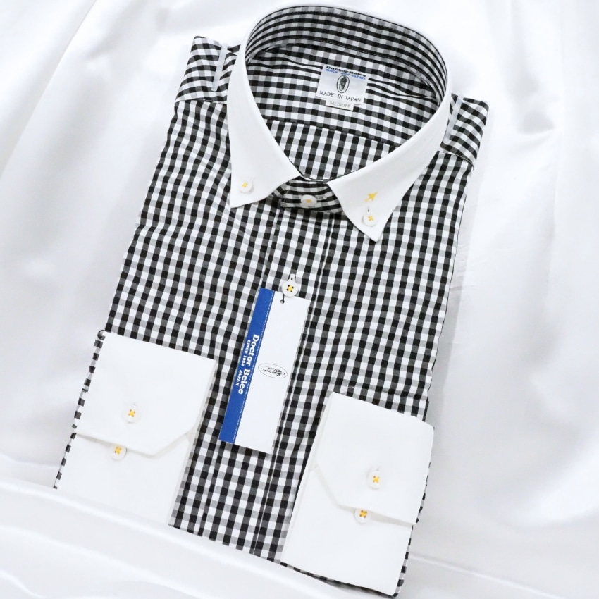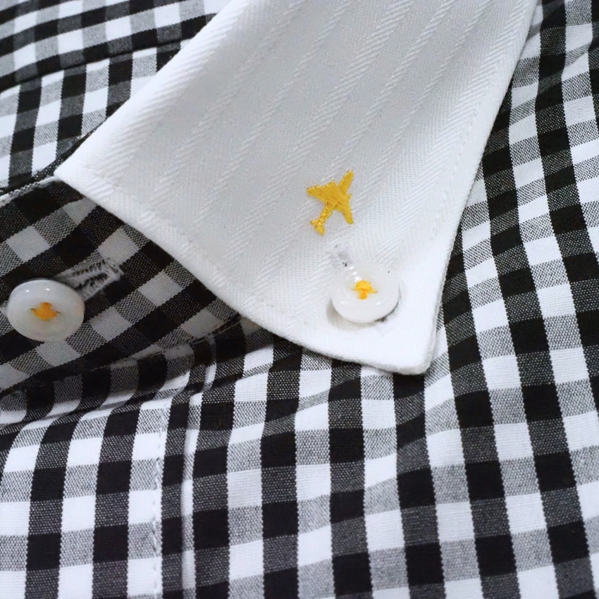 飛行機のワンポイントを入れ羽田空港らしいデザインにこだわりました。こちらの商品が手に入るのはドクターベリー羽田空港店とHANEDAオンラインショップのみ。一つのデザインで約30枚しか作らない極小ロット生産になります。また店舗スタッフがデザイン企画をし、生地選びから裏地、釦、衿型など細部にこだわりデザインしております。素材も綿100%(80番手双糸以上)の高級綿を使用しており、優しく柔らかい着心地を追求しています。良質な素材、オリジナルデザイン、極小ロット生産、日本製。たくさんのこだわりを詰めた一枚です。