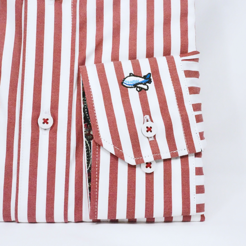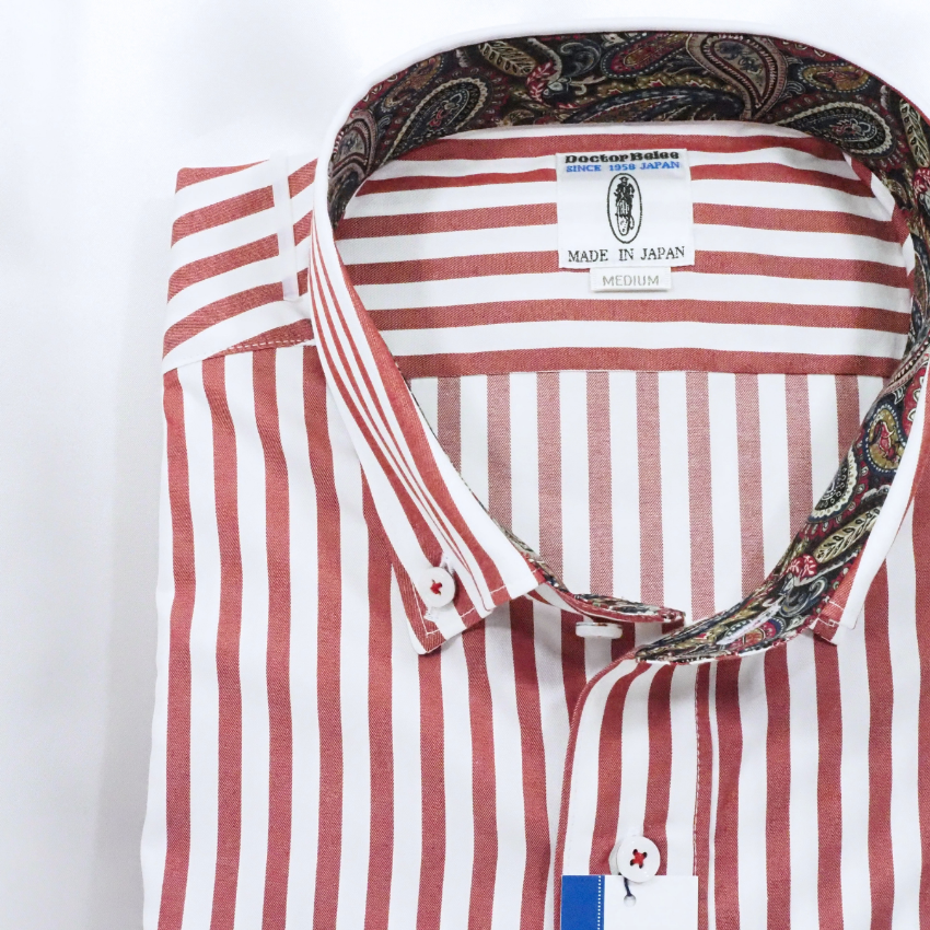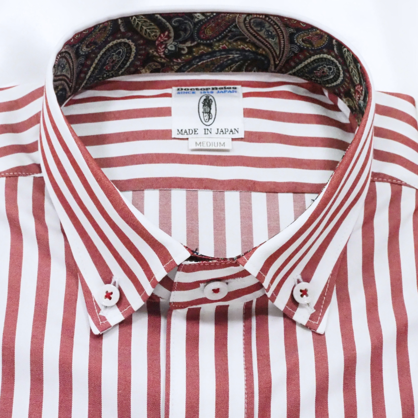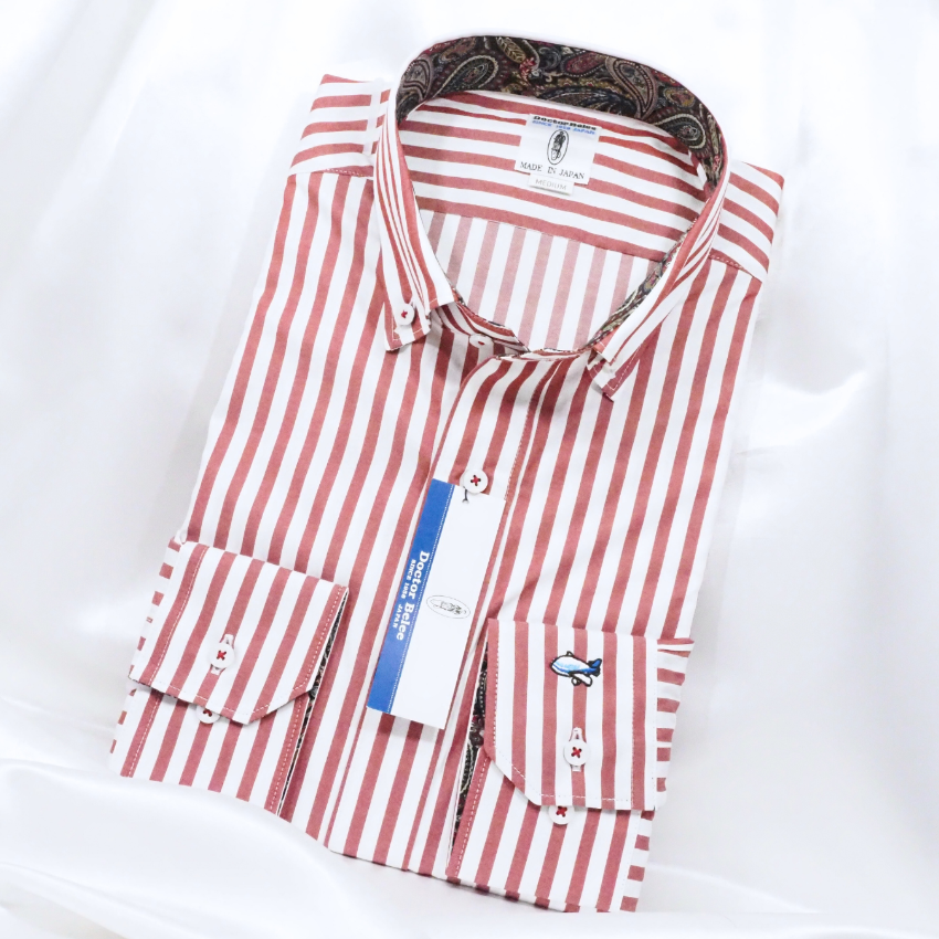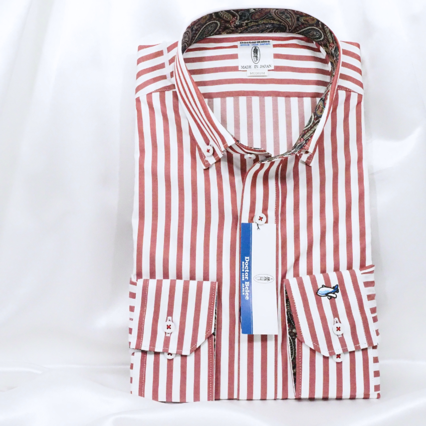 飛行機のワンポイントを入れ羽田空港らしいデザインにこだわりました。こちらの商品が手に入るのはドクターベリー羽田空港店とHANEDAオンラインショップのみ。一つのデザインで約30枚しか作らない極小ロット生産になります。また店舗スタッフがデザイン企画をし、生地選びから裏地、釦、衿型など細部にこだわりデザインしております。素材も綿100%(80番手双糸以上)の高級綿を使用しており、優しく柔らかい着心地を追求しています。良質な素材、オリジナルデザイン、極小ロット生産、日本製。たくさんのこだわりを詰めた一枚です。