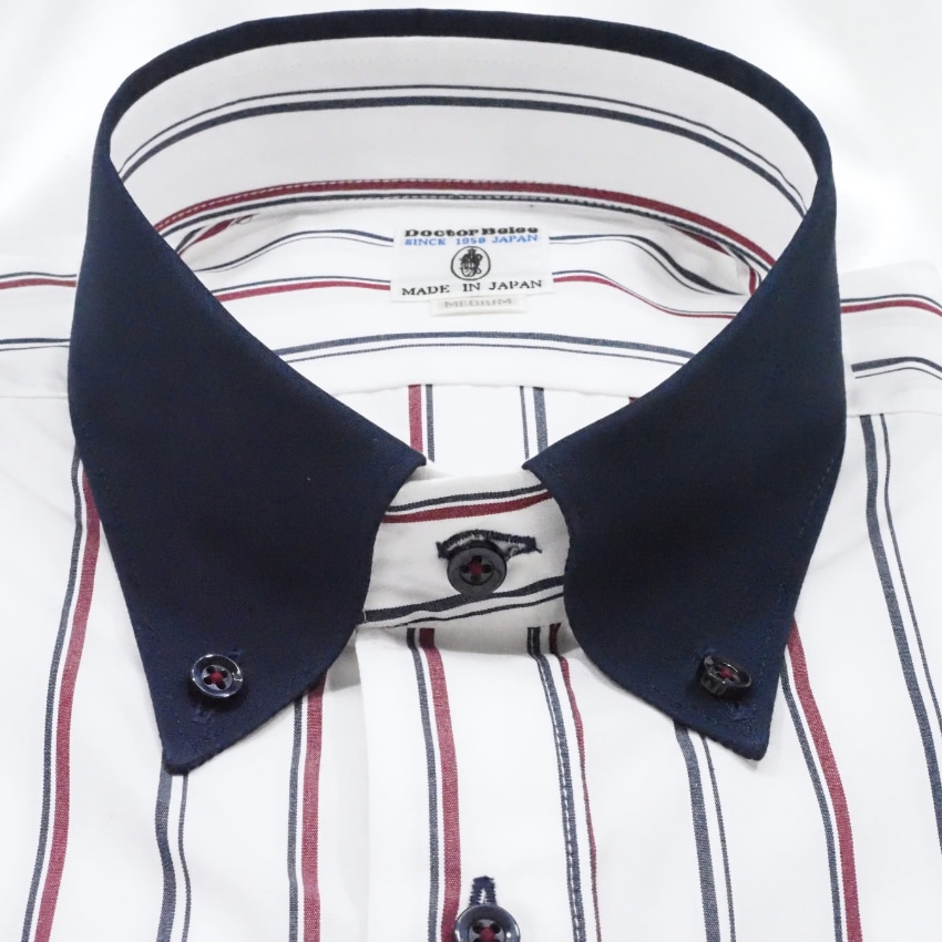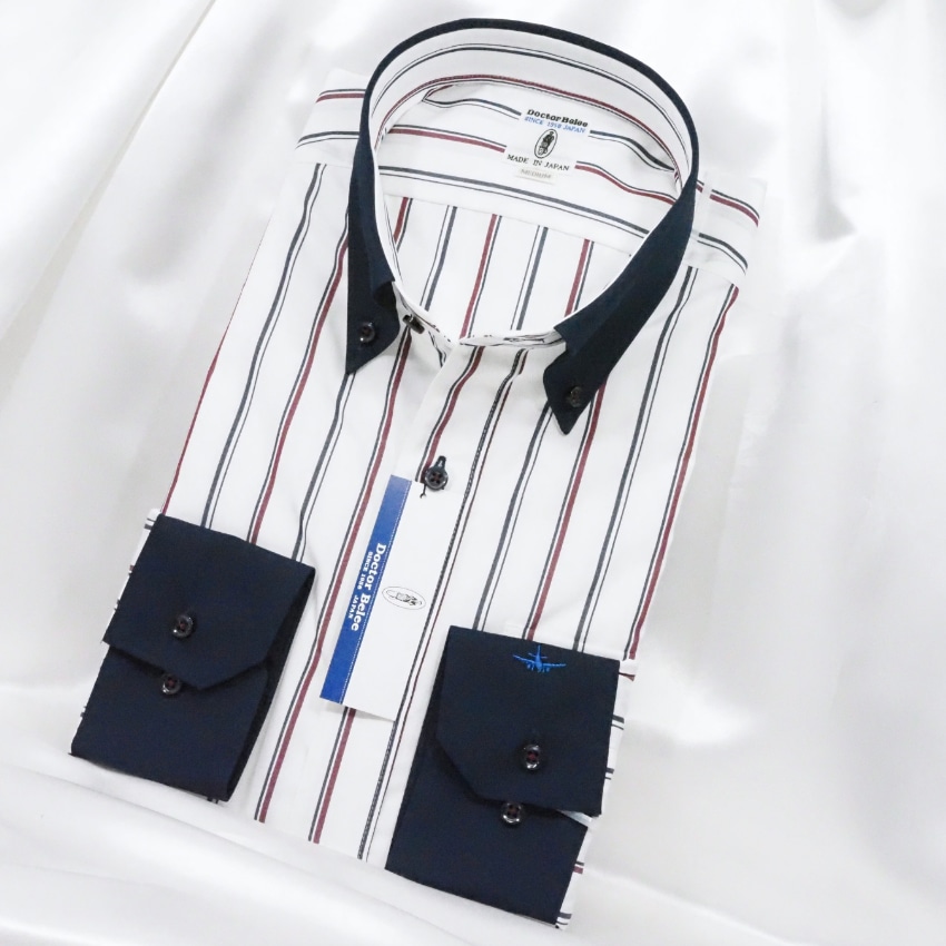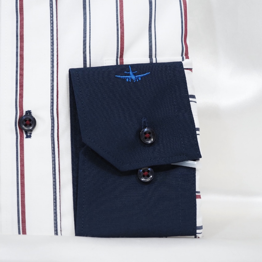 飛行機のワンポイントを入れ羽田空港らしいデザインにこだわりました。こちらの商品が手に入るのはドクターベリー羽田空港店とHANEDAオンラインショップのみ。一つのデザインで約30枚しか作らない極小ロット生産になります。また店舗スタッフがデザイン企画をし、生地選びから裏地、釦、衿型など細部にこだわりデザインしております。素材も綿100%(80番手双糸以上)の高級綿を使用しており、優しく柔らかい着心地を追求しています。良質な素材、オリジナルデザイン、極小ロット生産、日本製。たくさんのこだわりを詰めた一枚です。