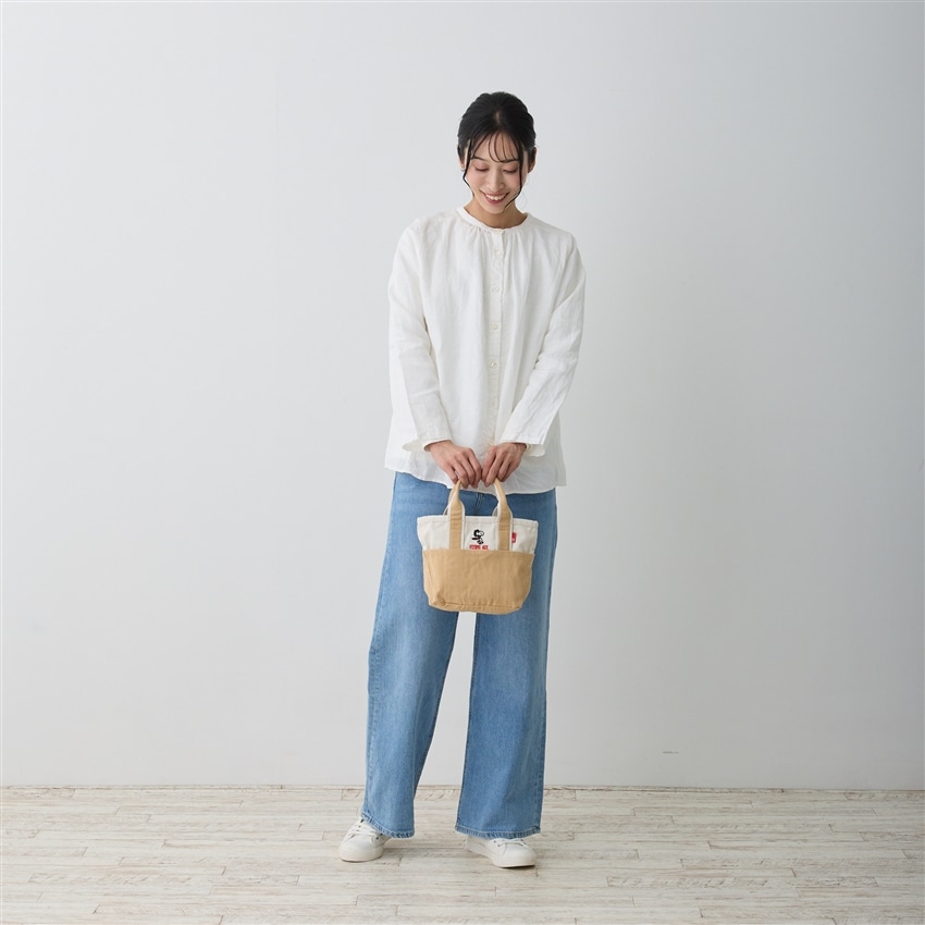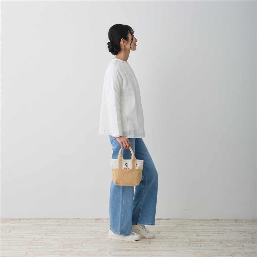 ざっくり厚手のリサイクルコットン生地を使った、普段使いにちょうどよいサイズのトートです。