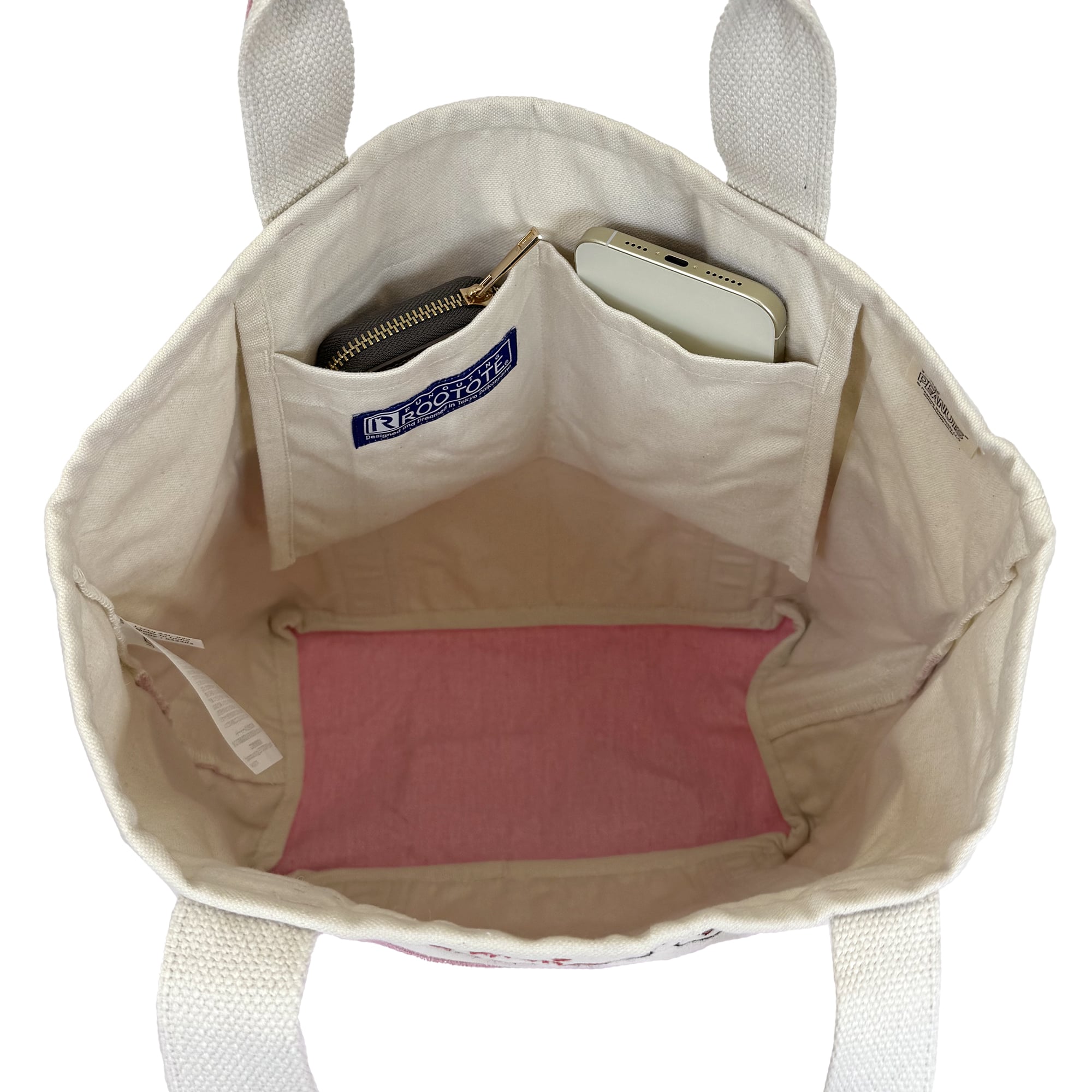 そのリサイクル糸が新たな生地に生まれ変わり、トートバッグがつくられています。