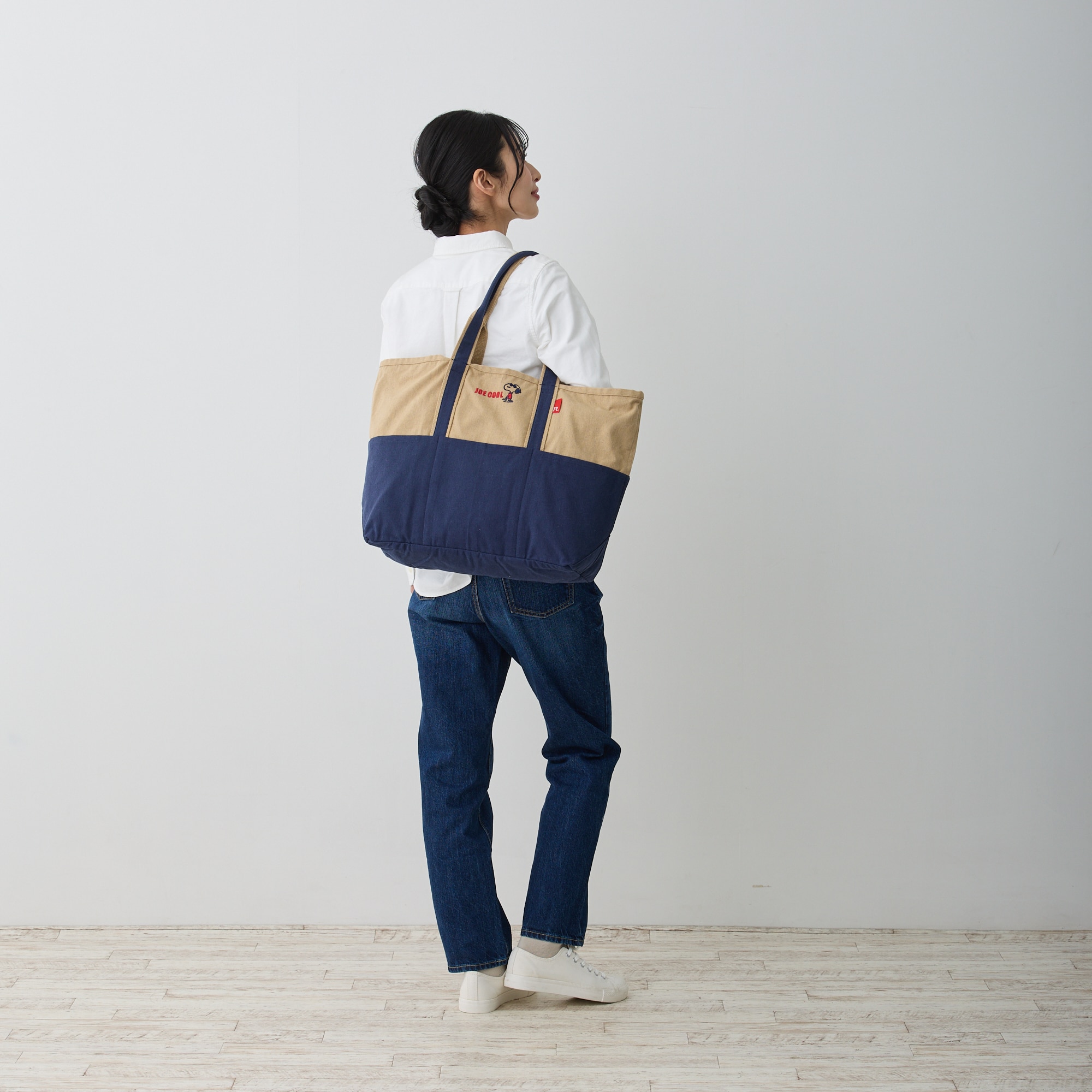 ざっくり厚手のリサイクルコットン生地を使った、普段使いにちょうどよいサイズのトートです。
