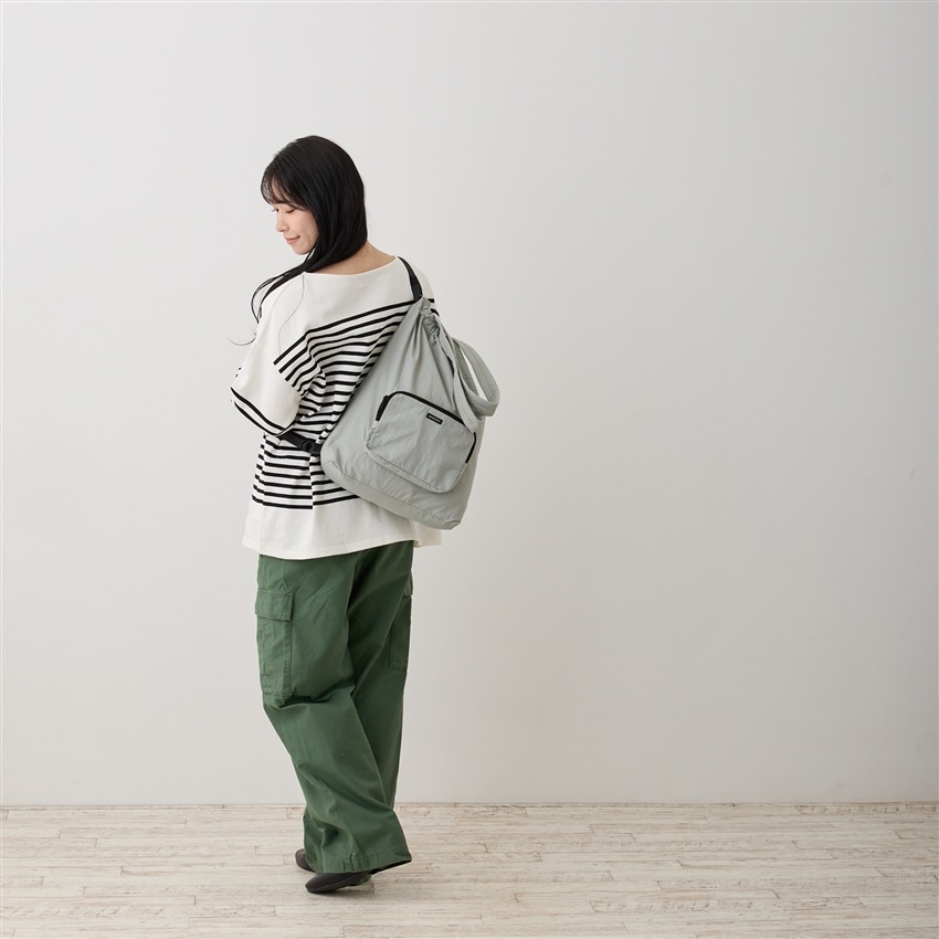 フラットなトートとしても、口元を絞って可愛らしく巾着トートとしても。