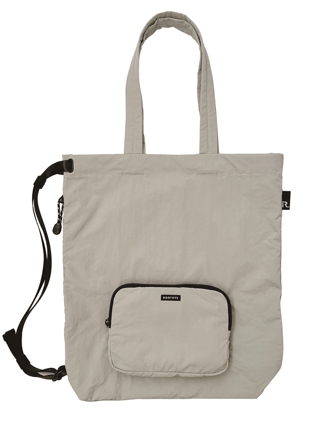 外ポケットにさっと折りたたむとトートバッグになる遊び心のあるデザイン。