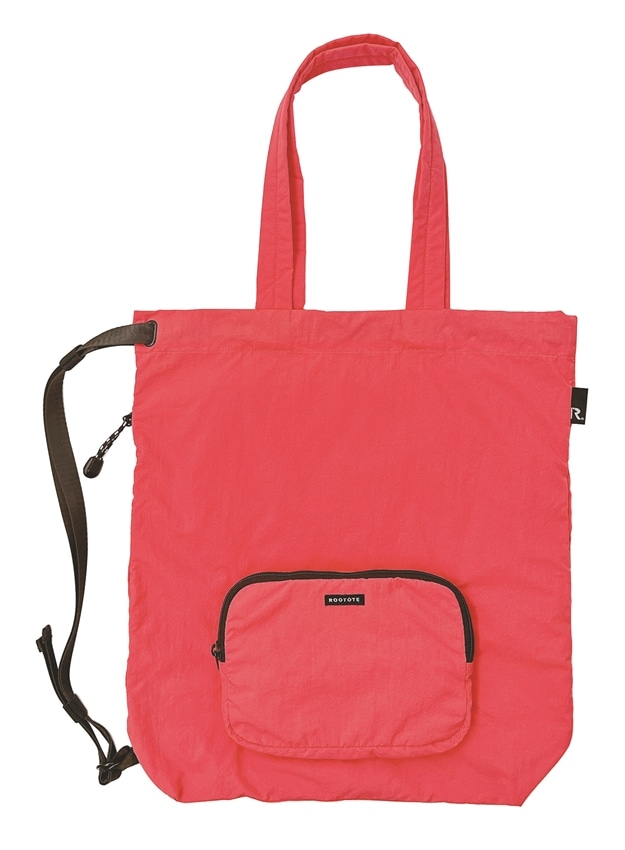 外ポケットにさっと折りたたむとトートバッグになる遊び心のあるデザイン。