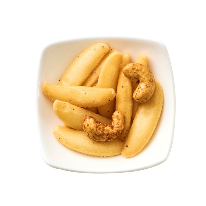 海鮮風塩だれの味わいをより深めてくれるかつお節カシューナッツと組み合わせ。