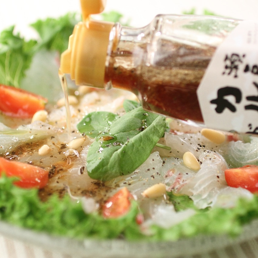 瀬戸内の豊かな恵みを使用したドレッシング「瀬戸内カルパッチョドレッシング」「瀬戸内玉ねぎドレッシング」「瀬戸内バジルドレッシング」の3本セットです。