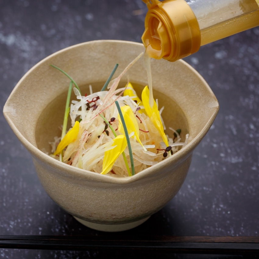 広島県産のレモン、紀州産梅肉、純粋はちみつ、国産しょうが、「海人の藻塩」や米酢など厳選素材を使用した、カスターニャ特製のドレッシングセットです。
