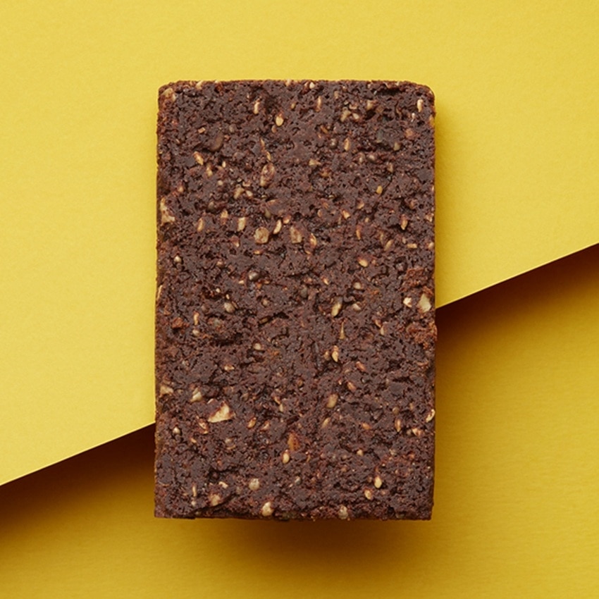 ローストアマニやチアシードなどの風味と食感が、生地のソフトな口当たりに弾けます。片面はカカオ75%ショコラでコーティング。