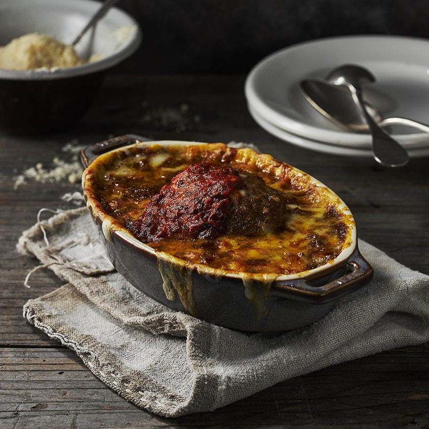 濃厚なベシャメルソースと肉感贅沢なミートソースが特徴の本格ラザーニャ。